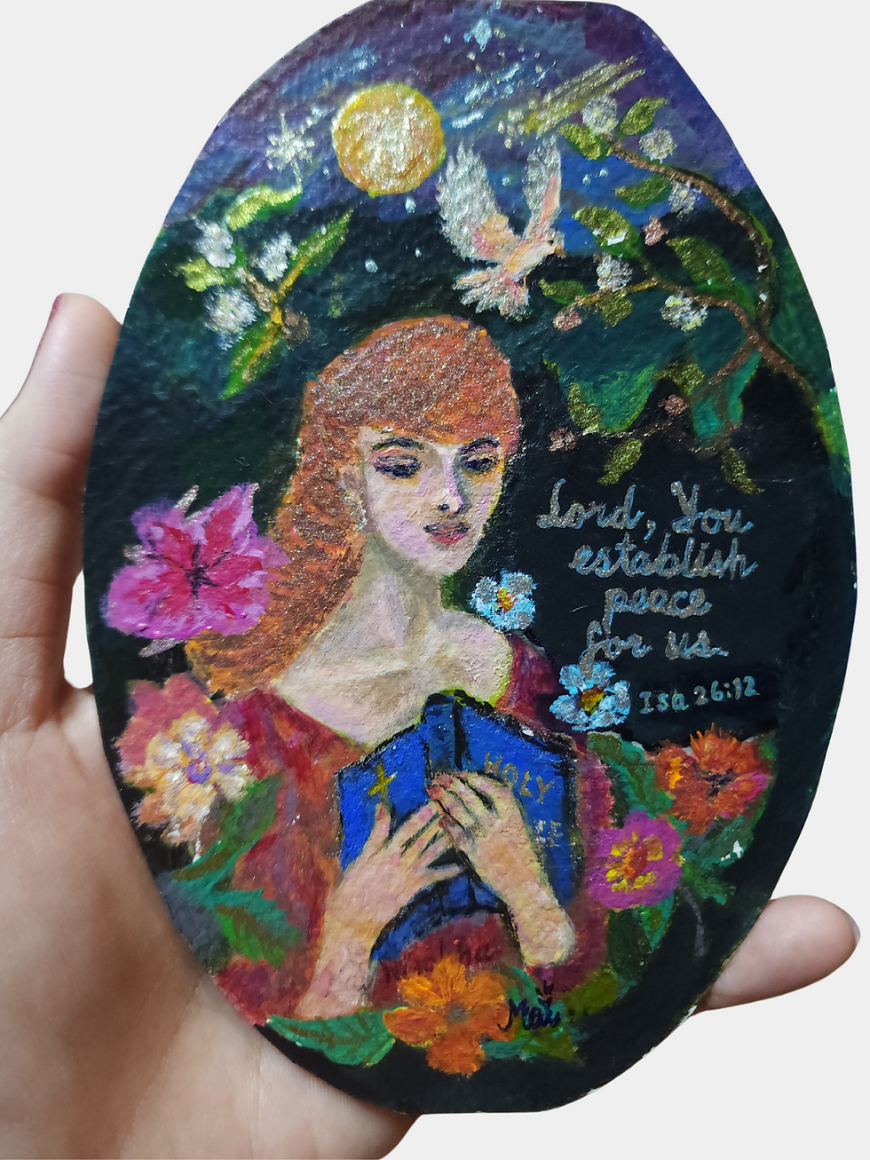'Originals' are expressions of faith, created with God’s love and the guidance of the Holy Spirit. Crafted in mixed media - including oil color, oil pastels, watercolor, and acrylic - each piece carries the essence of His word, inviting you to reflect on His love and presence. May you discover pieces that speak to your soul.